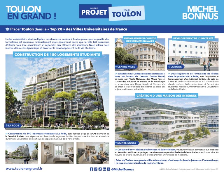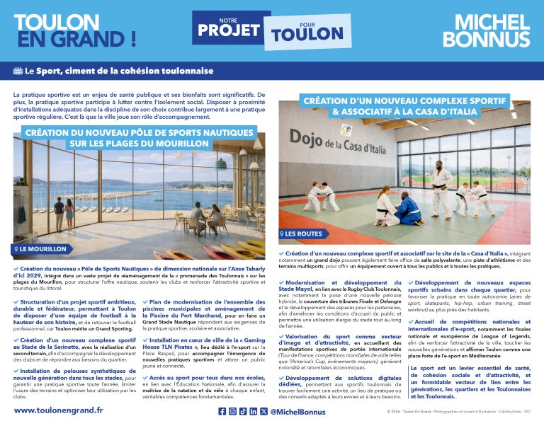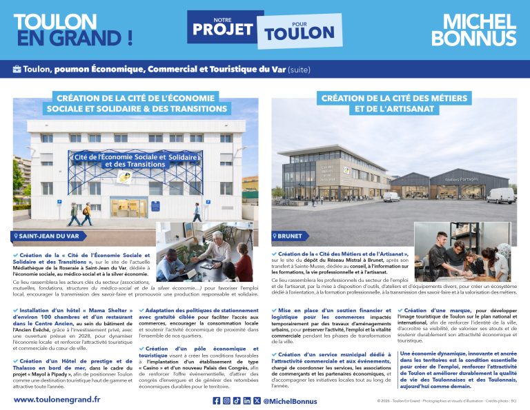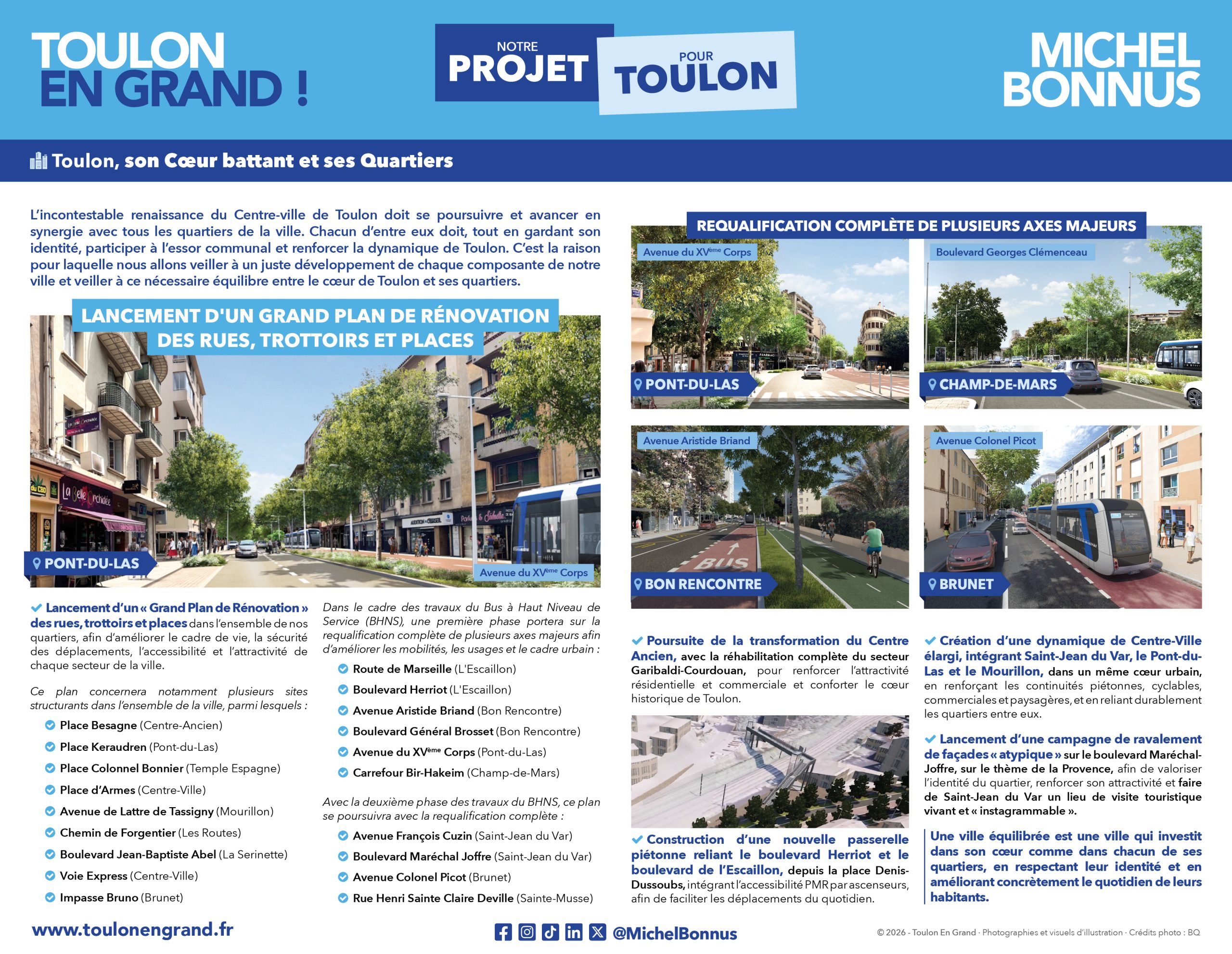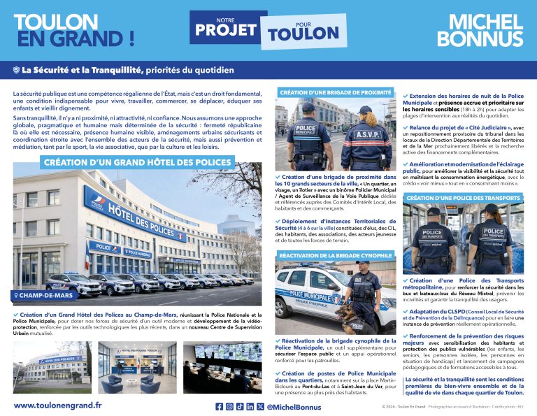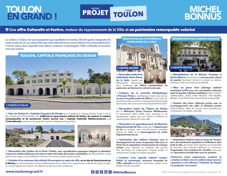 Notre projet « Toulon en Grand ! » tient en une promesse simple : de la cohérence, de la proximité et de l’efficacité.
