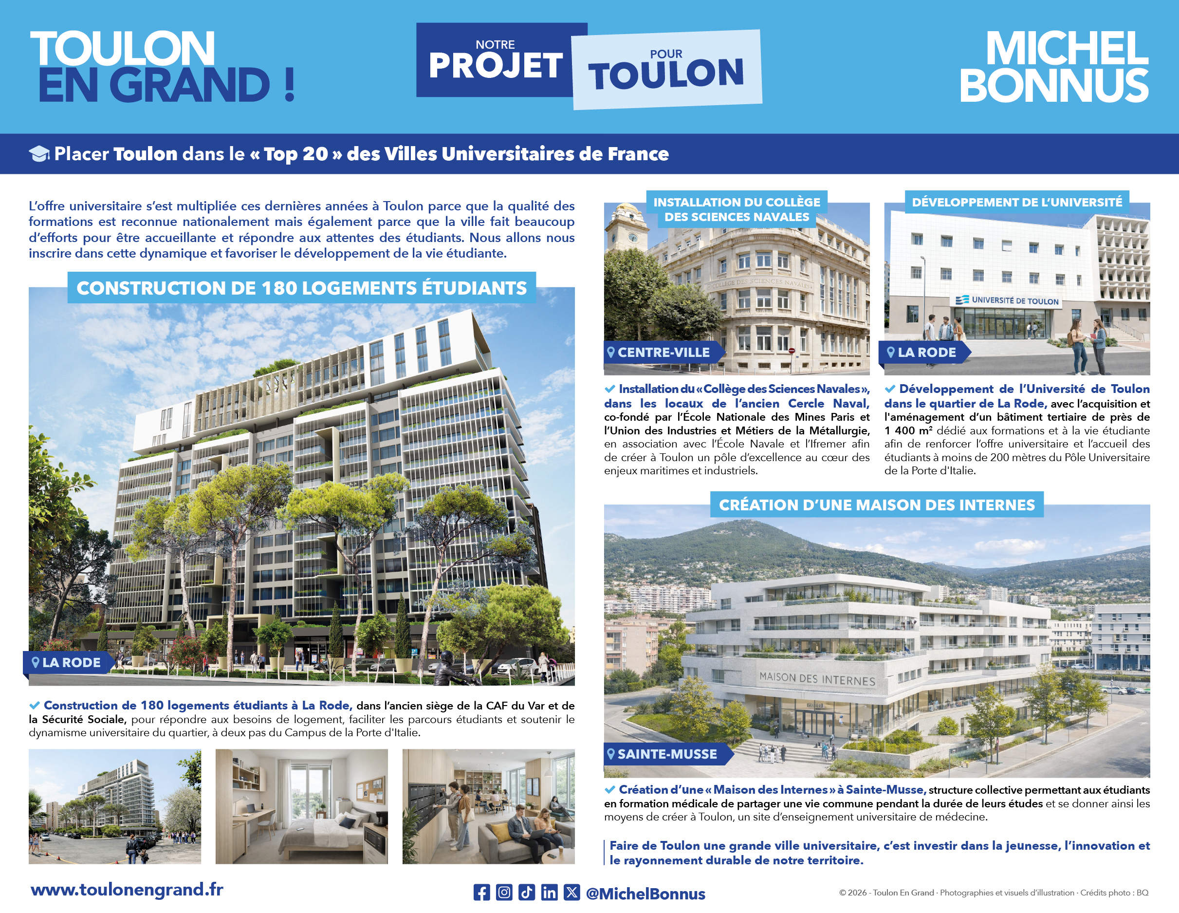 - Placer Toulon dans le « Top 20 » des Villes Universitaires de France